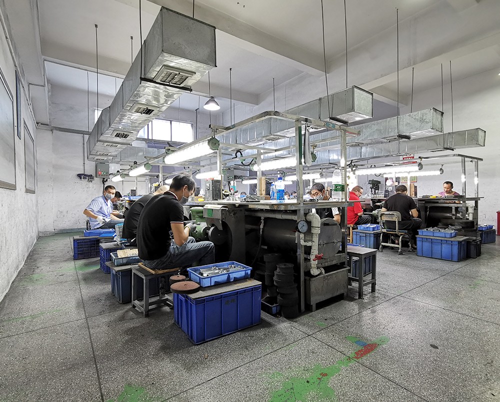 采用40位高端人工智能批鋒處理系統(tǒng),無(wú)死角、純手工毛刺打磨處理系統(tǒng),精雕細(xì)啄,結(jié)合紅外線檢驗(yàn)設(shè)備,保證每一件產(chǎn)品無(wú)毛刺殘留。